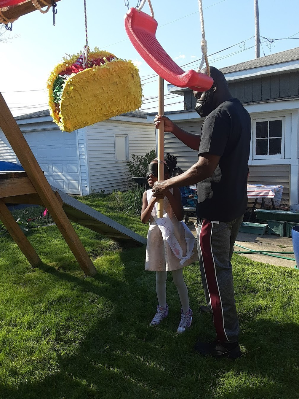 I asked my mom if I could have Alyssa's 7th birthday party in their yard on May 1st. The weather would be perfect and it would just be us and a pinata.